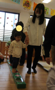 11月29日 サクラフェリーチェ保育園二俣川の りす組さんは 『みんなであそぼう』に 参加しました みんなで集まって ♪まぁるくなぁれ 輪になれ 続いてリトミックメドレー ふれあい遊び だるまさんが可愛い サーキット遊びにもチャレンジ トンネルくぐったり でこぼこ道だってお手の物 一本橋も上手に出来るよ 笑って!笑って! 可愛い笑顔がそろって金メダル お家の皆様も ご参加ありがとうございましたシェアする
